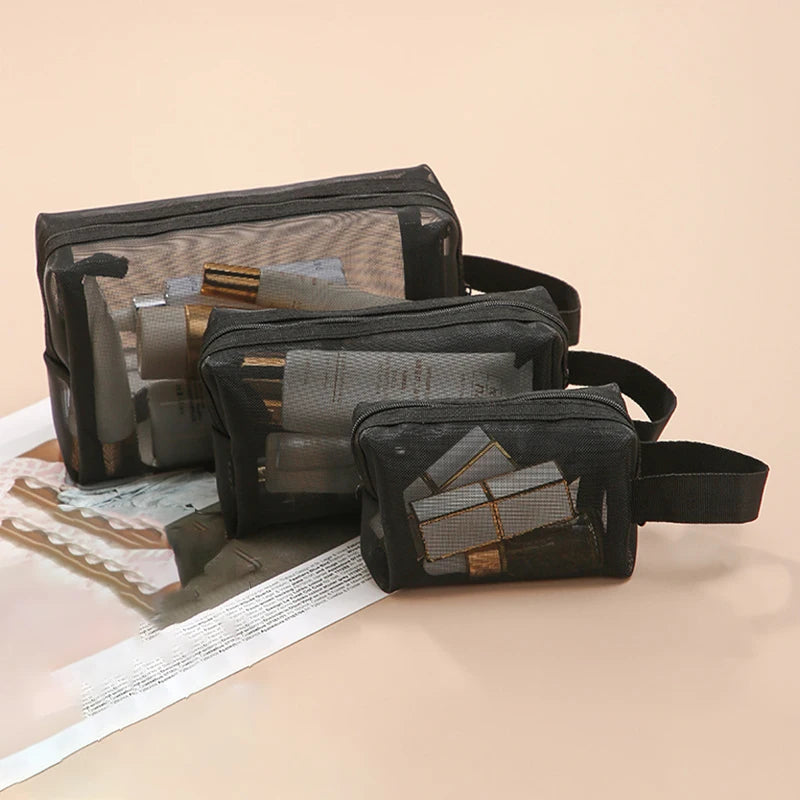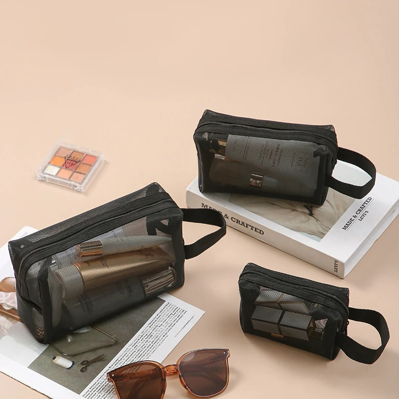 Black Layer Travel Cosmetic Bag Large Capacity Mesh Makeup Bag Makeup Storage Pouch Travel Toiletries Cosmetic Storage Bags