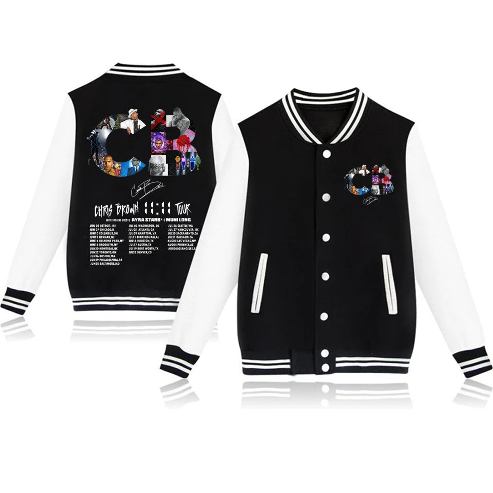 Chris Brown 11:11 Album Series Merch Baseball Uniform Coat Casual Fashion Chris Brown 11:11 Tour 2024 Jacket Men's Hoodies Gift