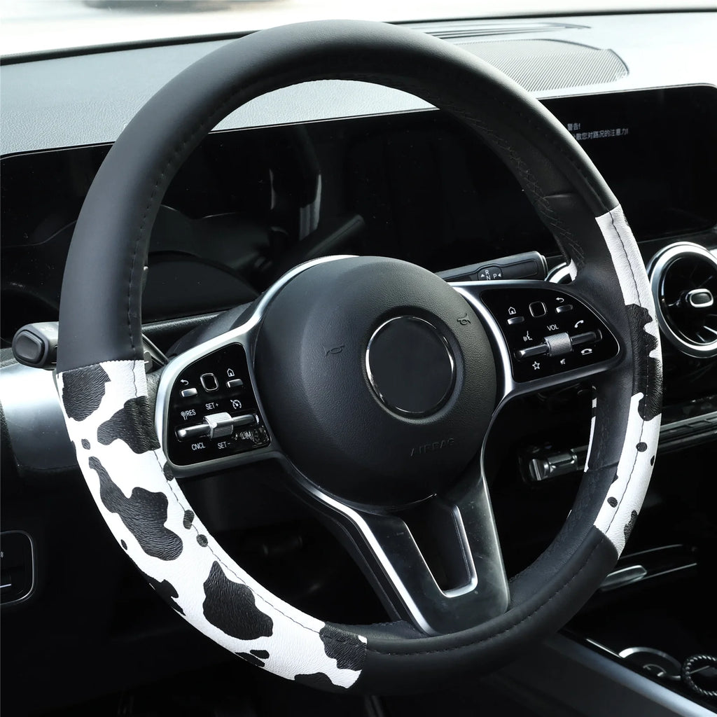 Cow Print Car Steering Wheel Cover Leather Non-slip Universal Fit Wheel Protector for BMW X1 X3 X5 e30 e46 e60 e90 f30