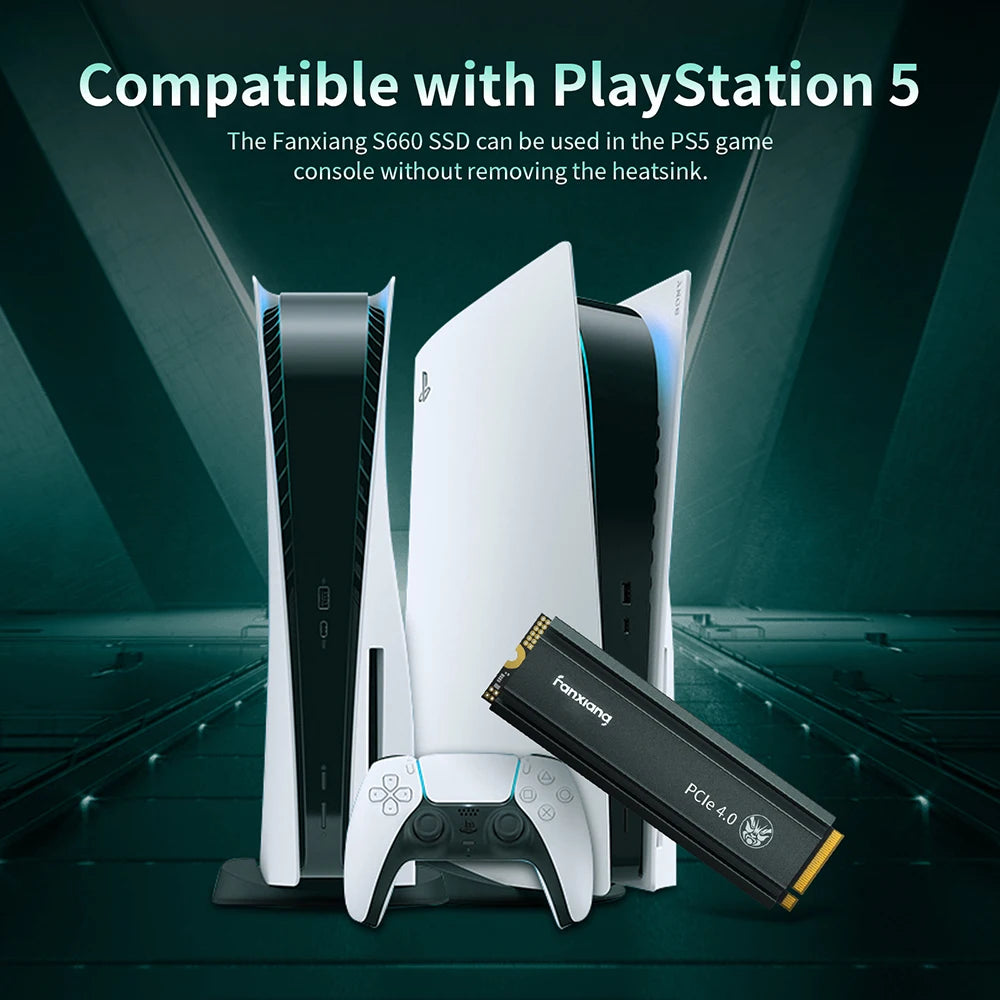 There is a heat sink (not installed) in the solid state drive box,which is perfectly compatible with PS5,effectively reducing the temperature of the hard drive,ensuring stable operation under high load,allowing you to play games more smoothly and enjoy a better gaming experience