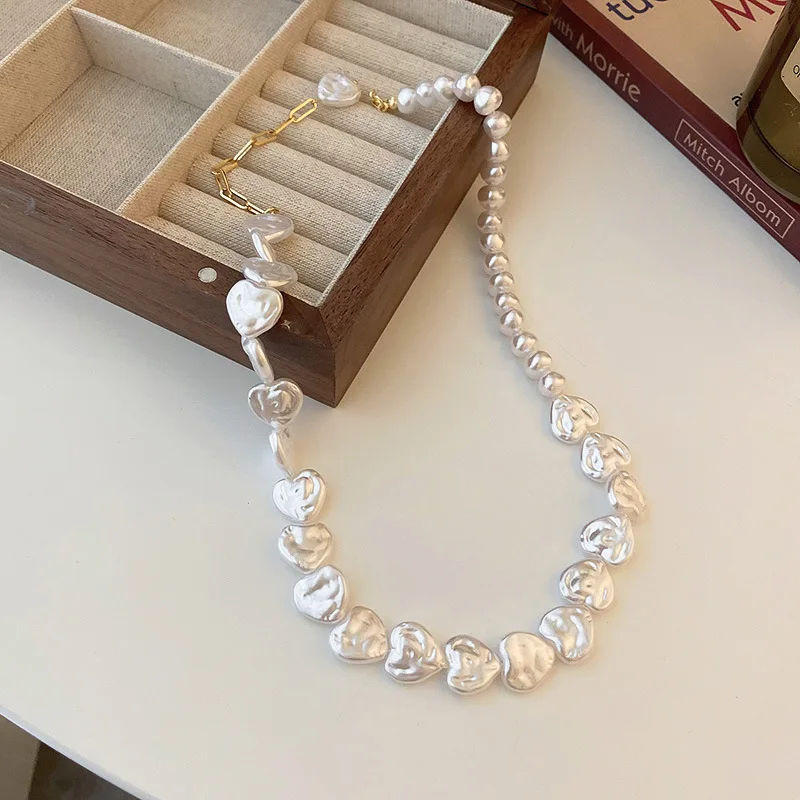 Fashion Irregular Pearl Love Pendant Necklace Women Trend Temperament Clavicle Chain Versatile Jewelry Girl Necklace Spring New