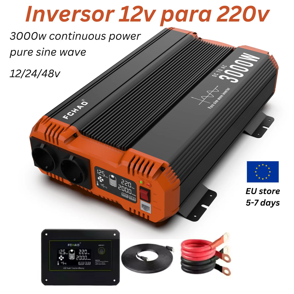 FCHAO Pure Sine Wave Inverter 6000W (3000W Continuous) DC 12V 24V 48V to AC 220V 230V 50Hz Power Converter with Remote Controlle