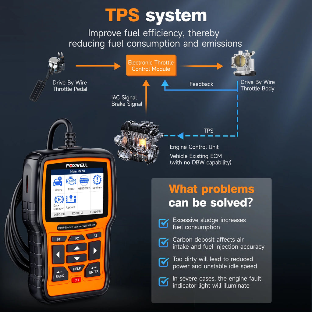 Foxwell NT510 elite-- New generation full systems diagnostic code reader, supports reading codes, clearing codes and live data of all electronic control modules, bringing you cost-effective vehicle diagnosis and maintenance. This car diagnostic scanner can pinpoint the exact issue source from Engine, gearbox, ABS, SRS, EPB, Immobilizer, IC, DSC, HVAC, etc.