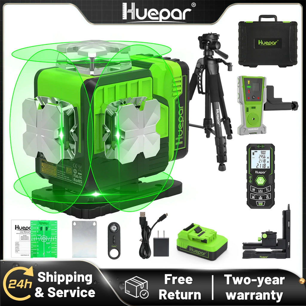 Huepar 16 Lines Laser Level With Receiver Tripod Rangefinder 4D Green Self-level Bluetooth Laser Tool Remote Control & Hard Case