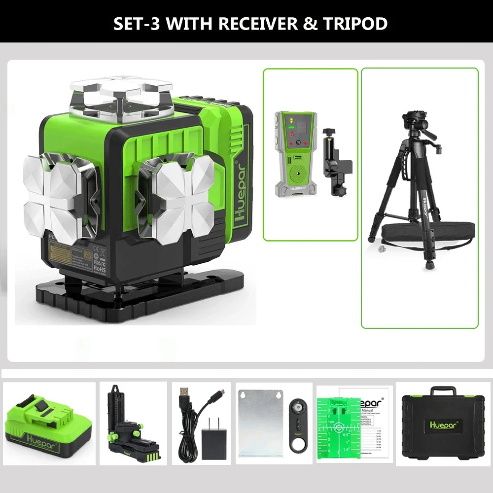 Name: Huepar 4D Laser Level With Receiver Tripod Rangefinder Set