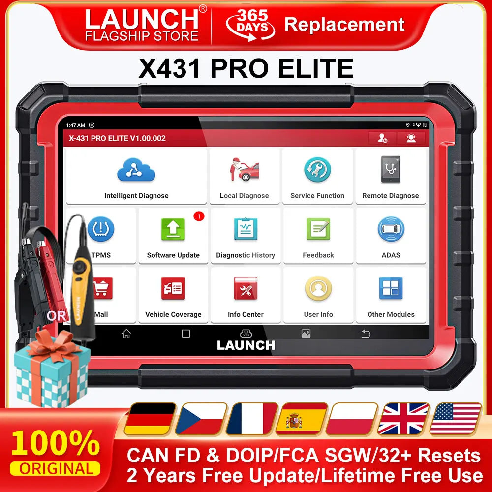 LAUNCH X431 PRO ELITE is an Indispensable Professional Diagnostic Scan Tool which can expand a technician’s capabilities, speed up the jobs, and save your time and money.It is the Bes t Choice for Technician,home mechanic,advanced DIYer,garage,car dealer,repair shop,etc.