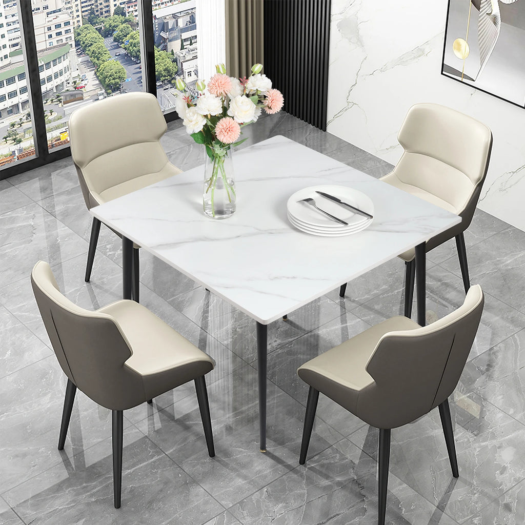 Mid-Century Slate Kitchen Dining Table with Sintered Stone Top and Metal Legs, Desk for Living Room, Dining Room
