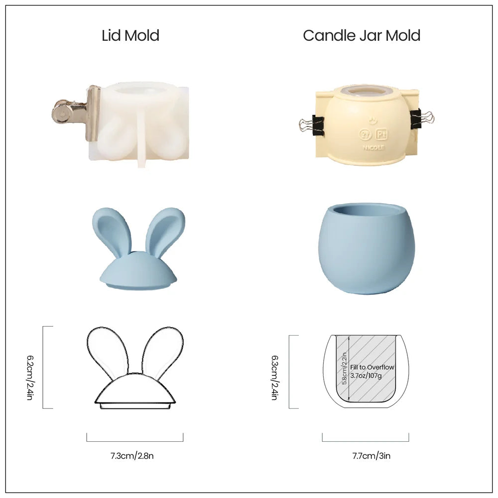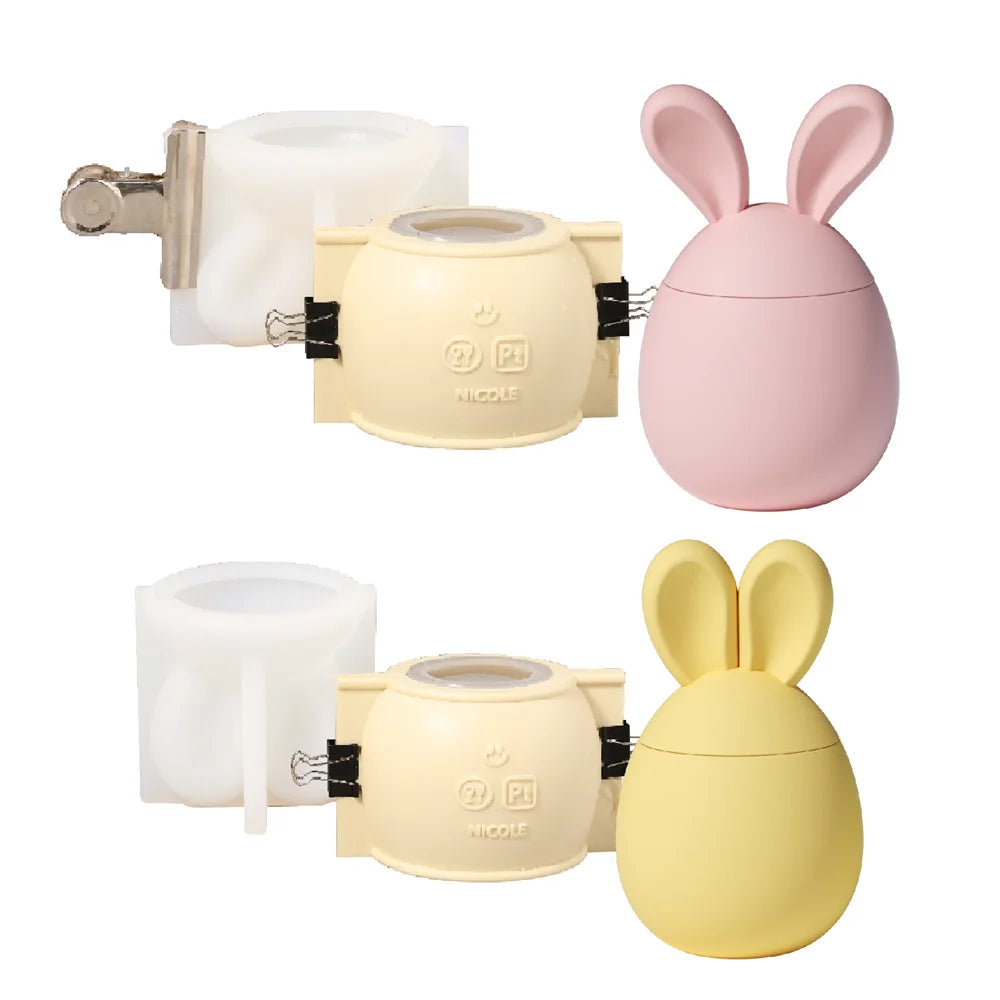 Nicole Candle Jar Silicone Molds for Concrete DIY Hoppy Bunny - Eared Easter Egg Storage Vessel Cement Mould Easter Gift Tools