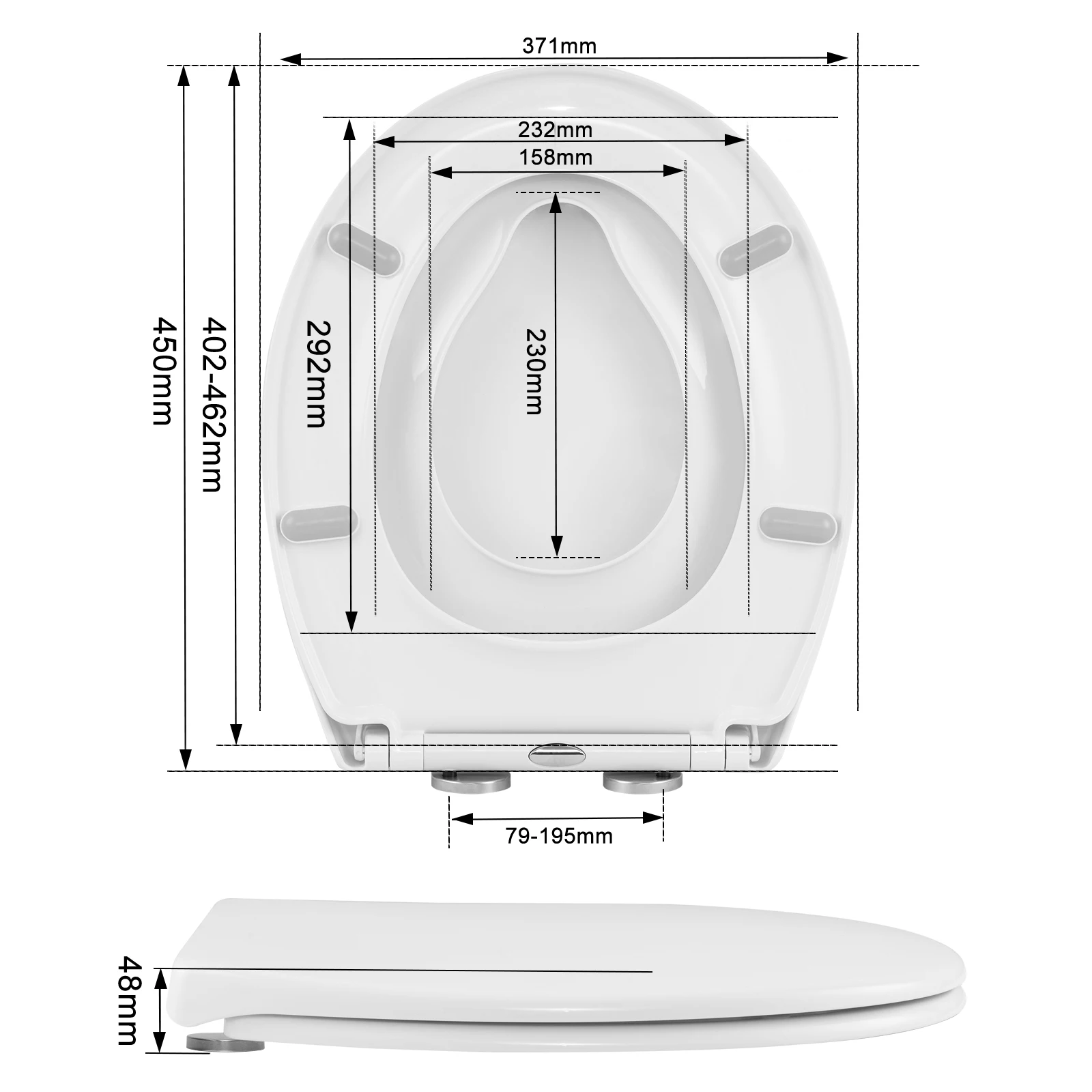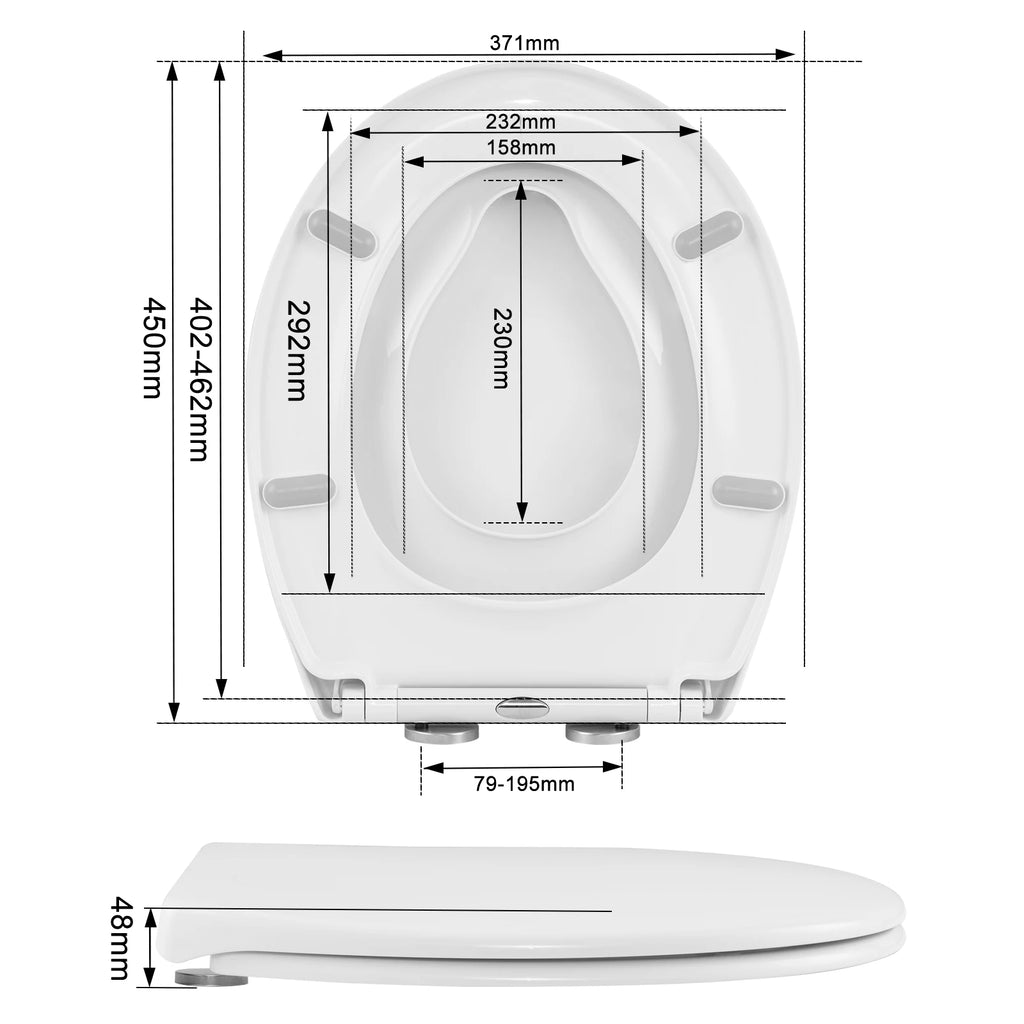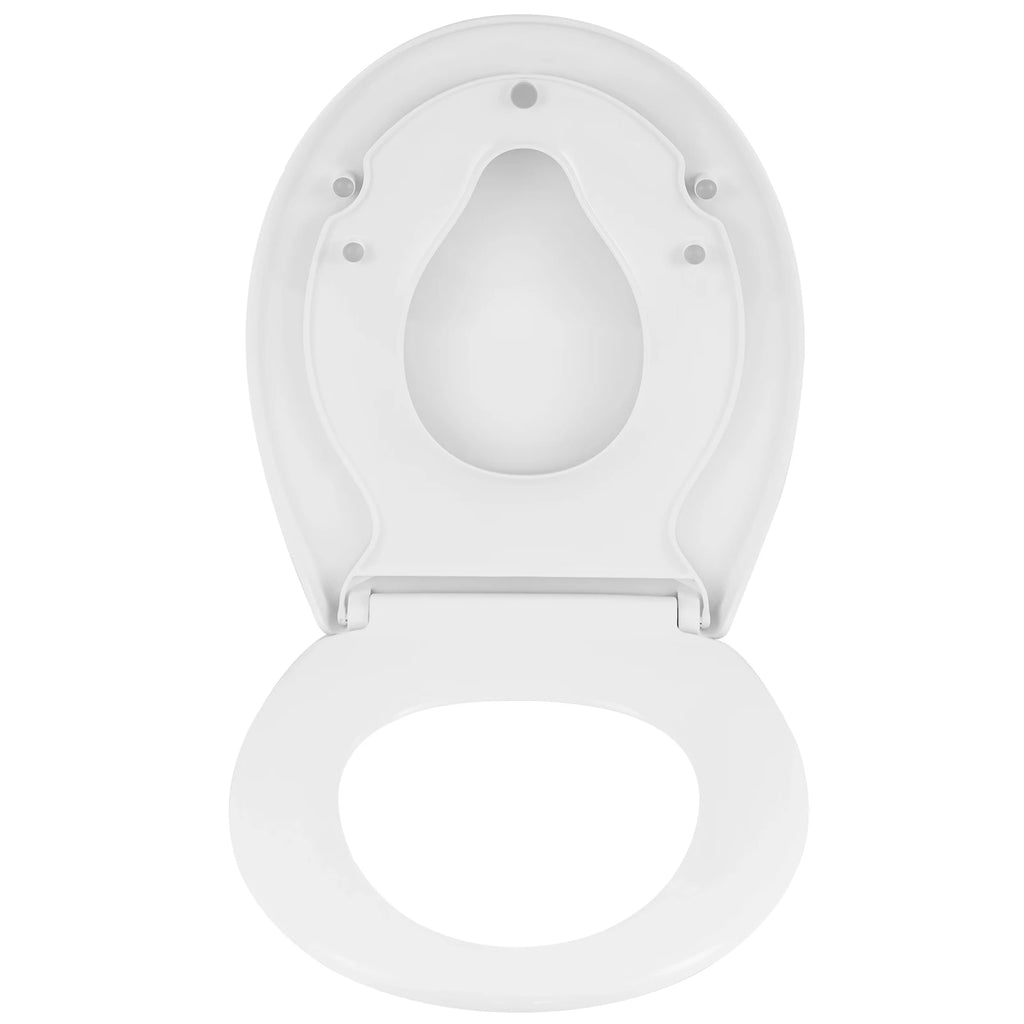 ✅[O-SHAPE TOILET SEAT]: Featuring the adjustable hinges, the white toilet seat fits most O-shape toilet bowls. Large outer seat: 444x371mm(LxW); large inner seat: 292x232mm(LxW), small inner seat: 230x158mm(LxW), Capacity: 175kg