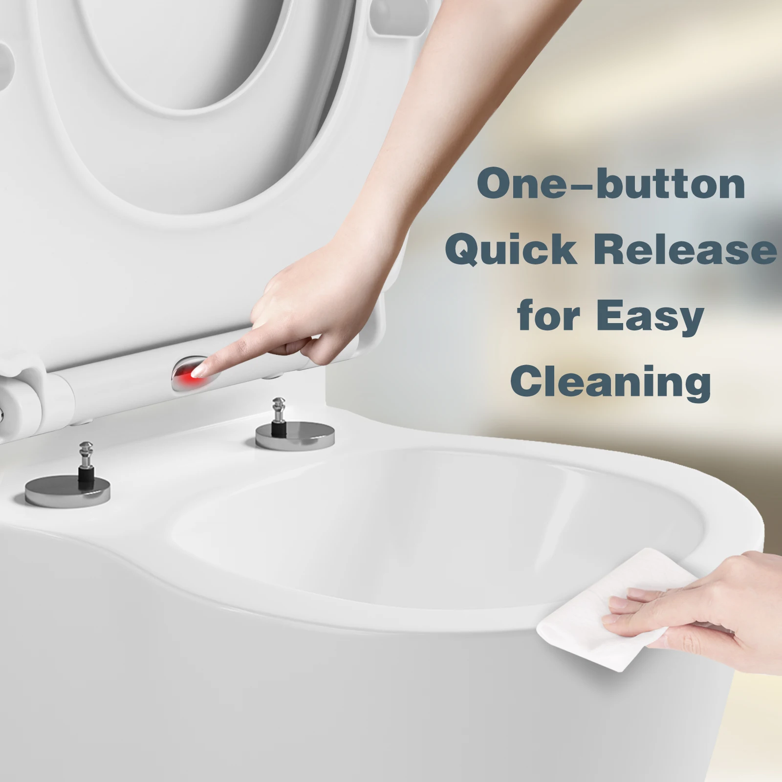 ✅[QUICK ASSEMBLY AND DISASSEMBLY]: 2 installation modes: from above or from below. Once installed, the seat is stable. 1-button quick release mechanism lets you easily remove the toilet seat for thorough cleaning