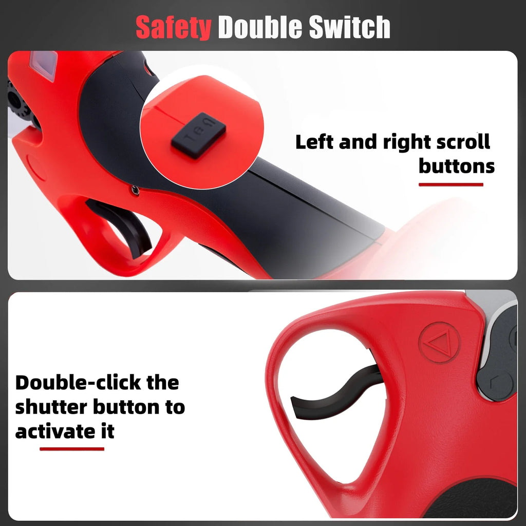 Thread-free professional garden secateurs are forged from SK7 Swiss carbon steel and powered by a brushless engine. They are sharp and durable and cut easily. Electric garden secateurs are very sharp and durable, and can easily cut heavy branches up to 40mm.
