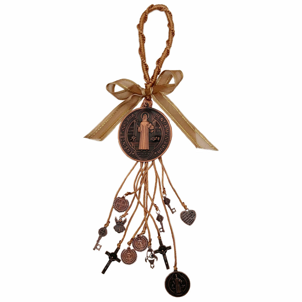 Saint Benedict Medal Protection Blessing Charm Pink Enamel Double Side Catholic San Benito Medalla Cross Charm Handmade Easter Day's Gift Car Hanging Charm for Men Women