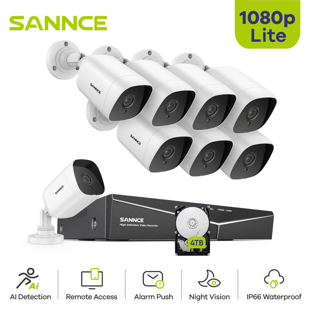 SANNCE 8CH 1080P Lite DVR CCTV System 4/8pcs FD 2.0MP Security Cameras IR Outdoor IP66 Video Surveillance Kit Motion Detection