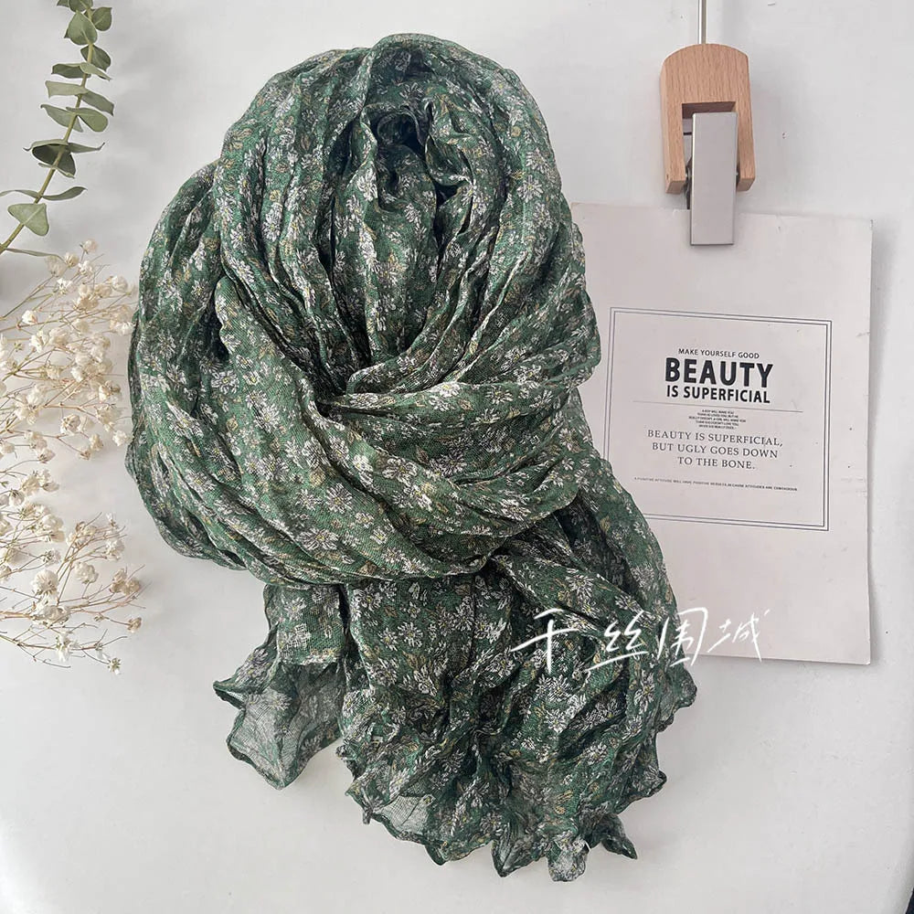 Spring and Summer New Thin Breathable Cotton Linen Touch Scarf Women's Artistic Sunscreen Shawl Versatile Japanese Floral
