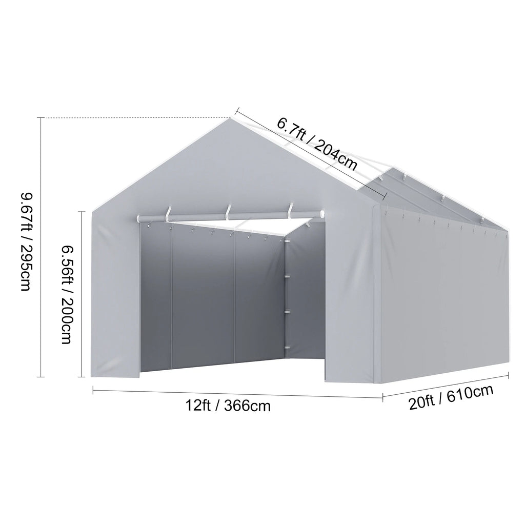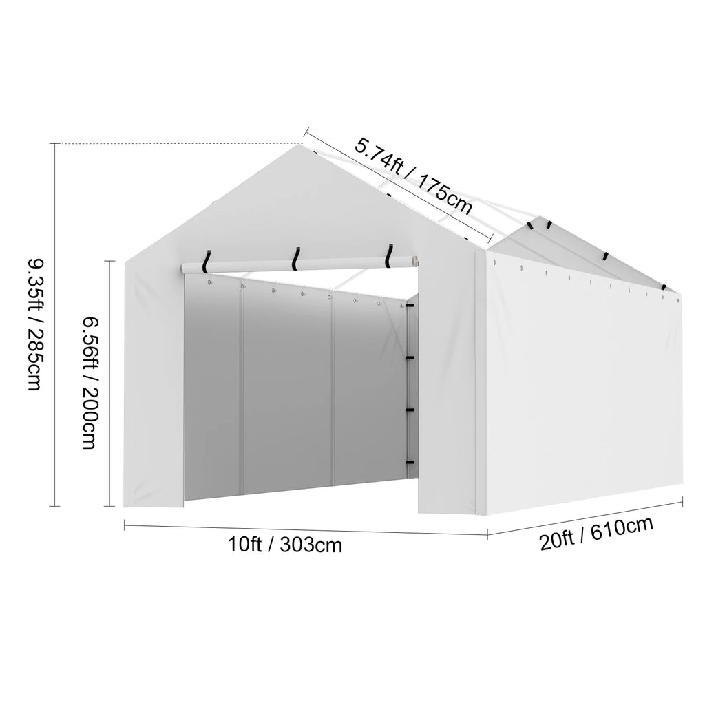 Quick & Tool-Free Setup: Install your canopy effortlessly using elastic ball bungees threaded through aluminum grommets. No tools required—just secure and tighten for a fast, hassle-free setup. Durable Design: Made from 16x16 PE woven fabric, this canopy is built to last. The double-layer heat-sealed seams and reinforced leg wraps ensure long-term strength, preventing deformation and water pooling. 12'x20' Ideal Fit: This canopy cover is tailored for a 12'x20' garage frame, providing ample coverage and a snug fit. (Note: Frame not included.) Versatile & Practical Use: Not just for garages! Ideal for temporary shelters, parties, weddings, or shaded outdoor areas. This canopy has a wide range of creative applications beyond just vehicle coverage. All-Weather Protection: Coated with PU and UV-resistant treatments, this fabric offers waterproofing and can withstand UV50+ radiation, making it perfect for all weather conditions, from rain to strong sunlight.