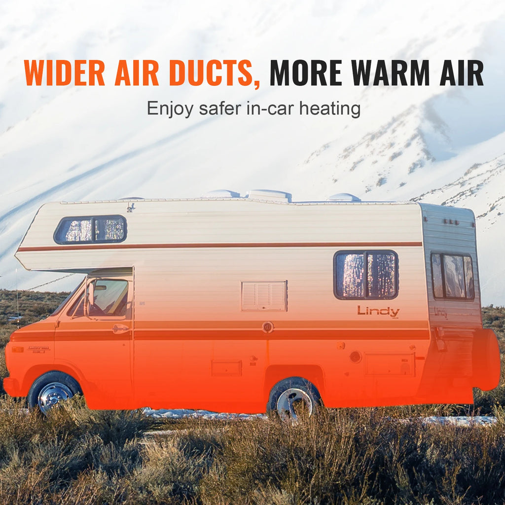 • Efficient Air Flow Design: The outlet hose duct boasts a large 3-inch (76mm) diameter for rapid warm air delivery, while the exhaust pipe has a 1-inch (25mm) diameter for safe exhaust air discharge, enhancing interior heating safety.
