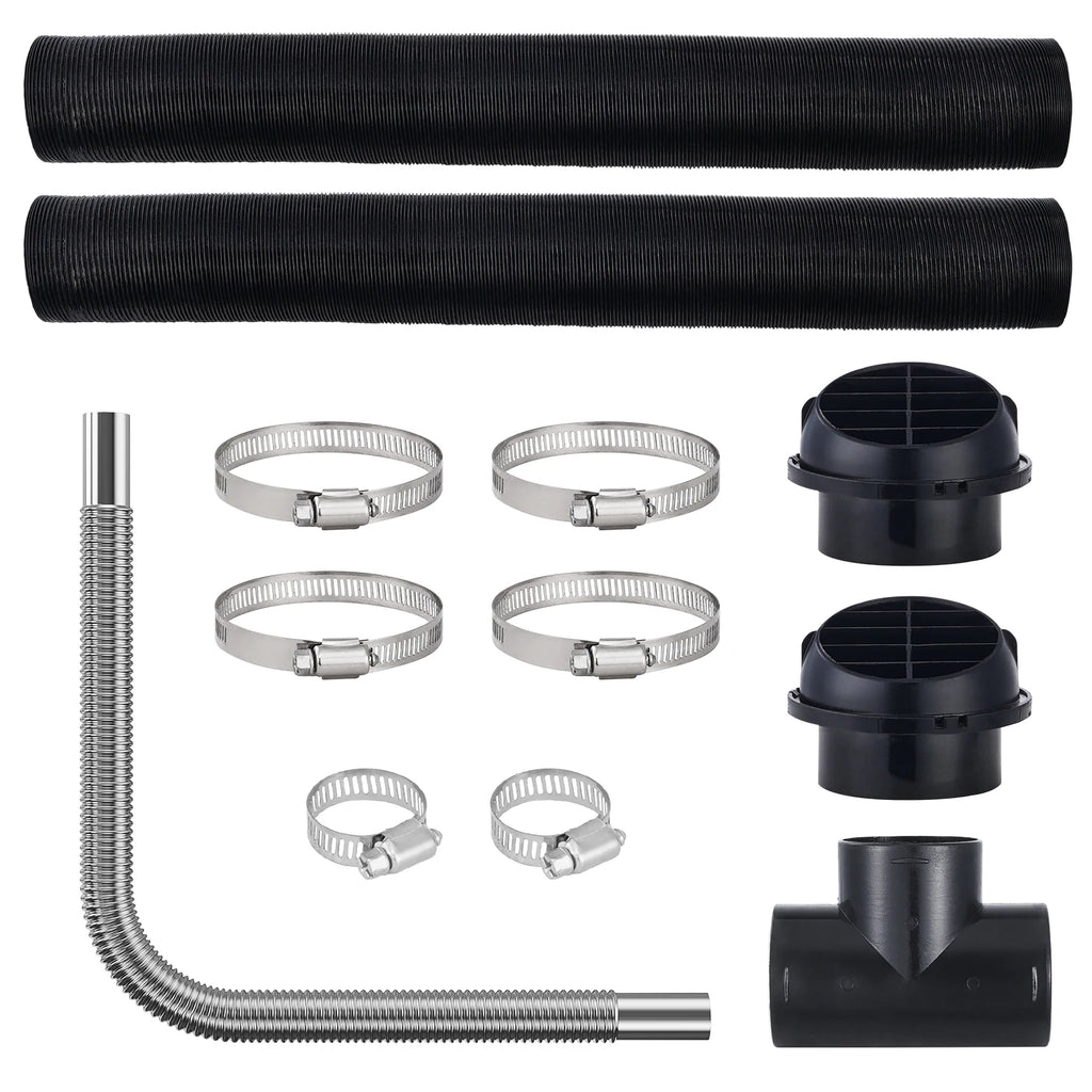 SucceBuy Diesel Heater Pipe Ducting Set 3" Extendable Air Duct Hose 1" Stainless Steel Exhaust Pipe 2 Air Vents Tee Air Outlet