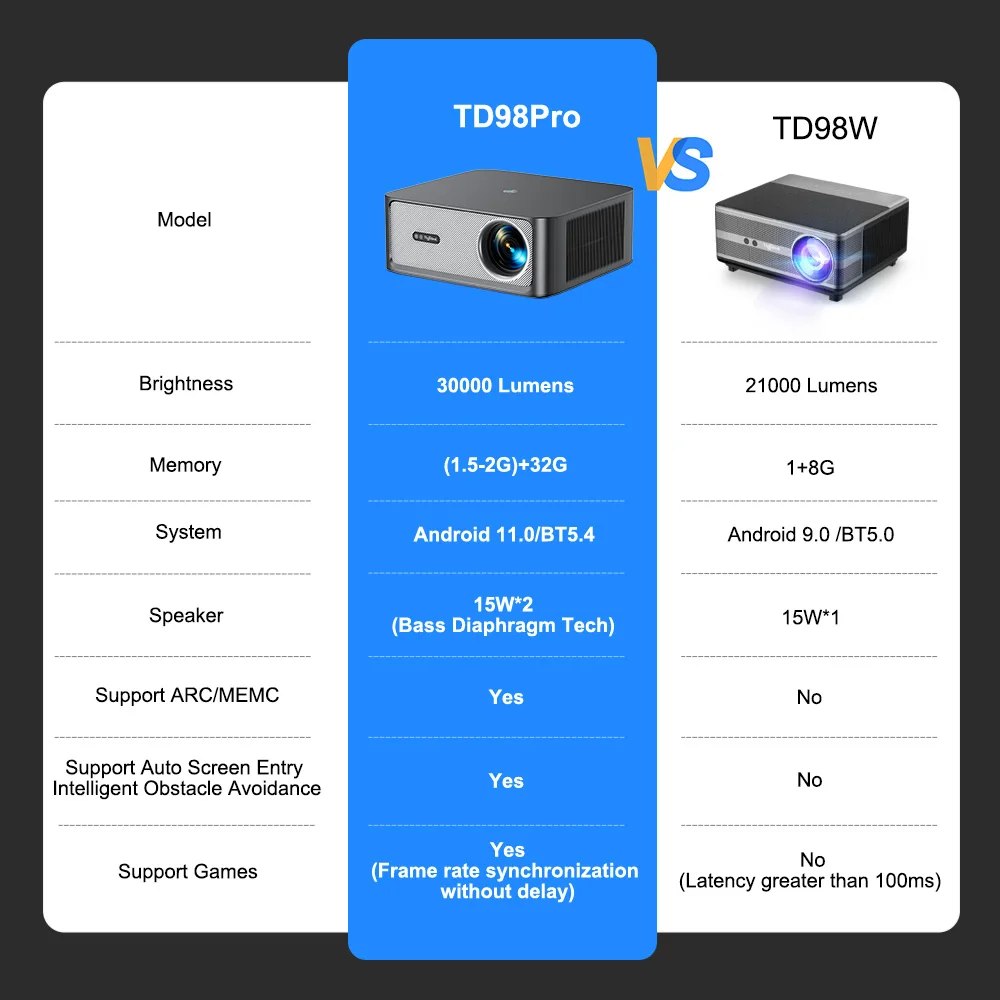 The vast majority of projectors on the market have a latency of around 100-250 ms , and their refresh rates are also insufficient, resulting in a poor gaming experience. This Gaming Projector Support MEMC, Smoother and Clearer Visuals, No more lag