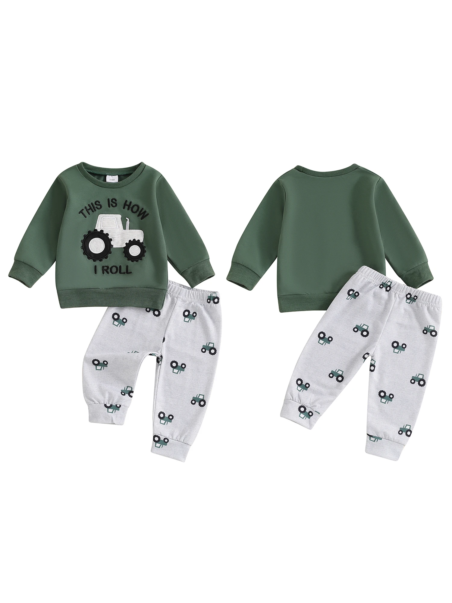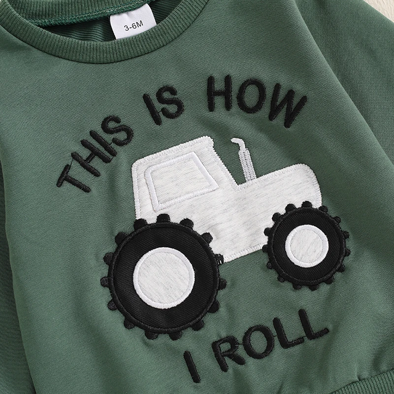 Baby Boys Pants Set, Tractor Print Long Sleeve Sweatshirt with Elastic Waist Sweatpants Infant Clothes