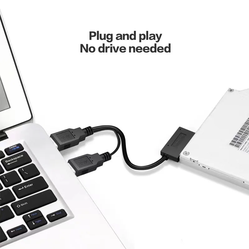 USB 3.0 to Mini SATA II 7+6 13 Pin External Cable For PC Laptop Notebook CD/DVD ROM Slimline Slim Power Supply Adapter Converter