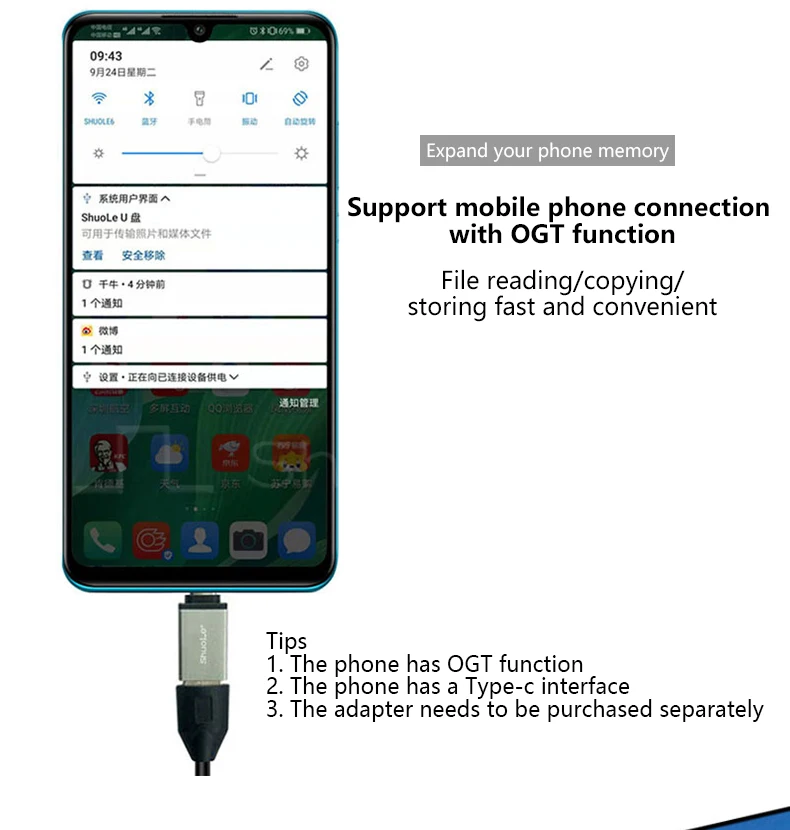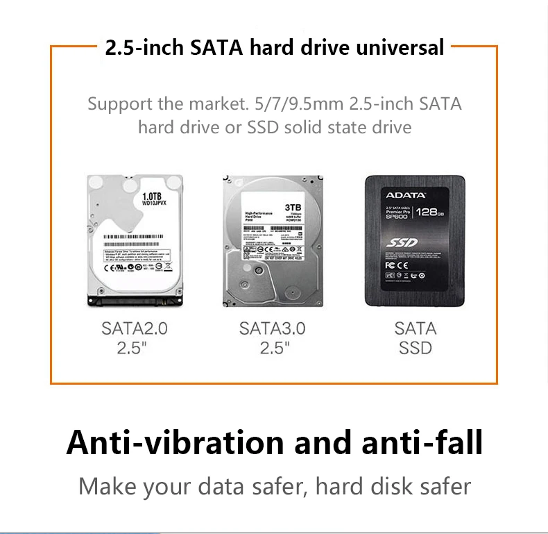 Support capacity: support notebook hard disk or SSD with SATA interface up to 2000G