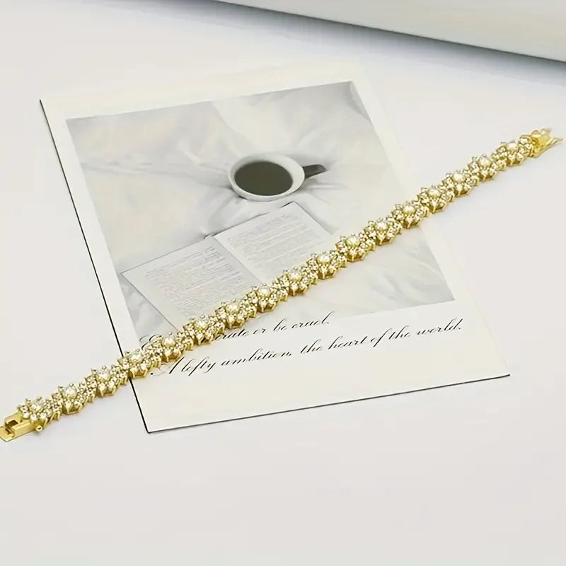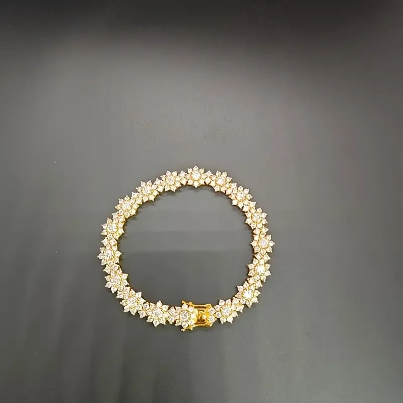 1PC S925 Sterling Silver Moissanite Sunflower Bracelet, Men and Women Temperament Fashion Party Engagement Anniversary Gift