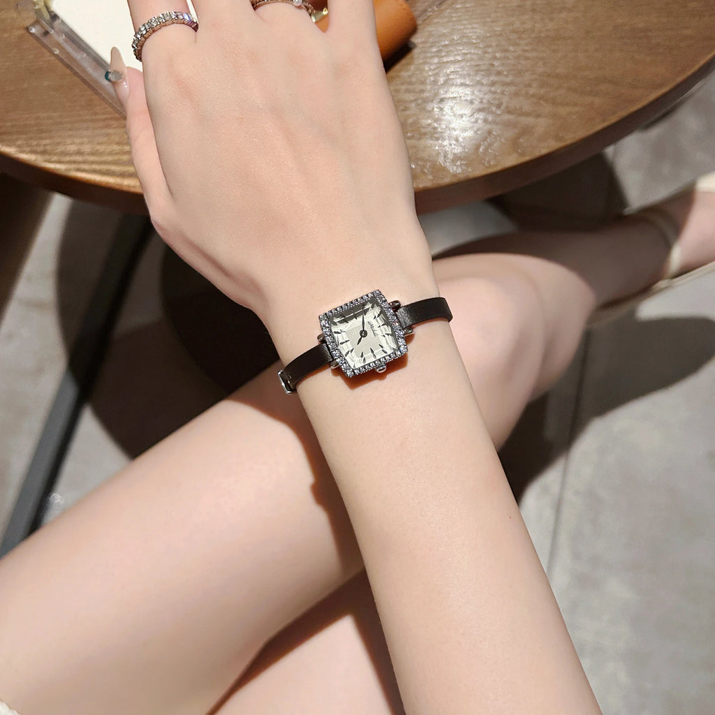 2023 New Women's Quartz Watch Inlaid with Rhinestones Luxury Temperament Retro Elegant Square Case True Pity Gift for Lovers