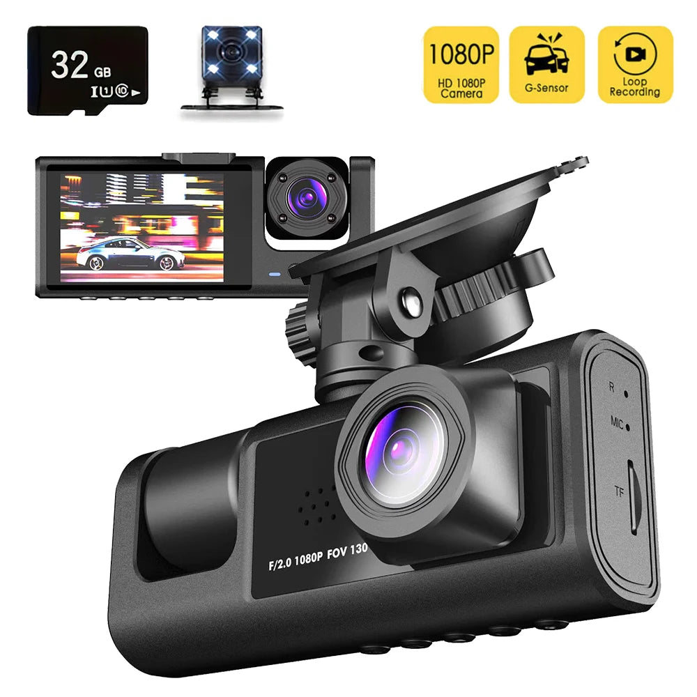 3 Camra Dash Cam for Cars Camera 1080P Car Dvr Vehicle Recorder Video Recorder Front and Rear Camera W/ IR Night Vision Dashcam