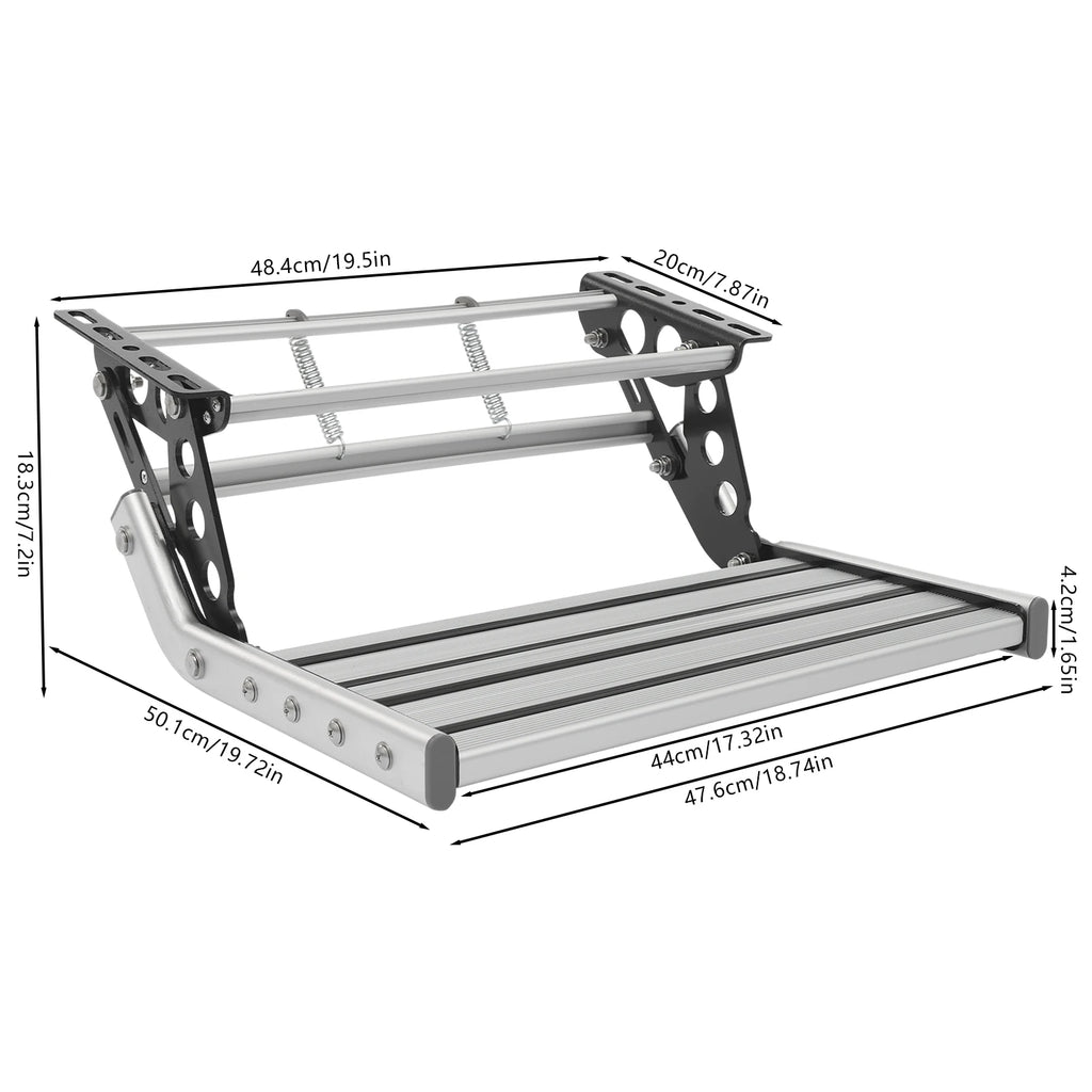 Bymaocar Manual Rv Step with 12v LED Light Aluminum Manual Folding Rv Step Rv Camper Step