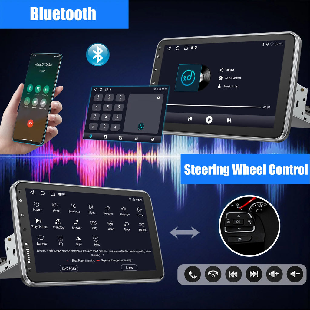 【10.1" Android Vertical Rotatable Car Stereo】This single din car stereo with high-definition 10.1 inch 2.5D tempered glass mirror touch screen,and which can be rotated by 180°.You can adjust the screen manually to make it display vertically or horizontally. Give you the most comfortable visual and touch experience.This car radio installation size is: 178(L)* 50(W)*145(D)mm.Please confirm whether the size is appropriate before buying.