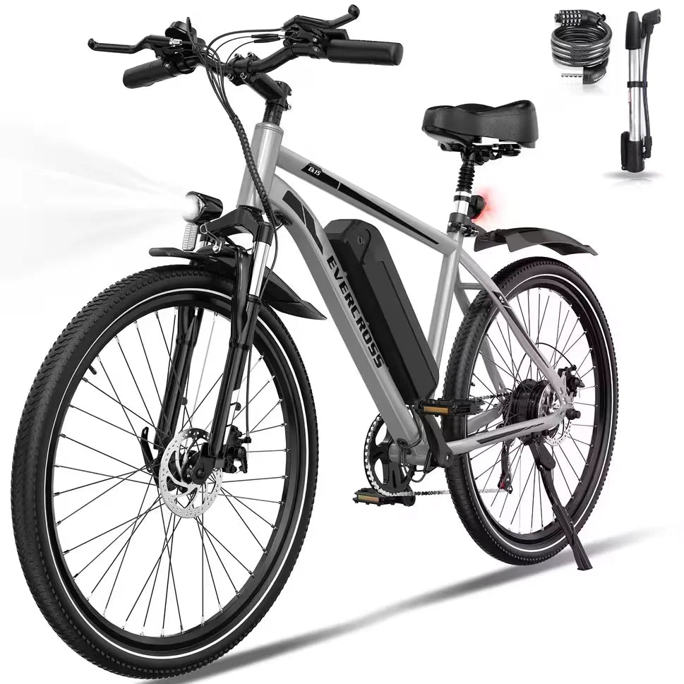 EVERCROSS TECH EK15 Electric bike adult, 26 E-boat with removable battery 36V 12Ah, 7 speeds, Range 35-90km