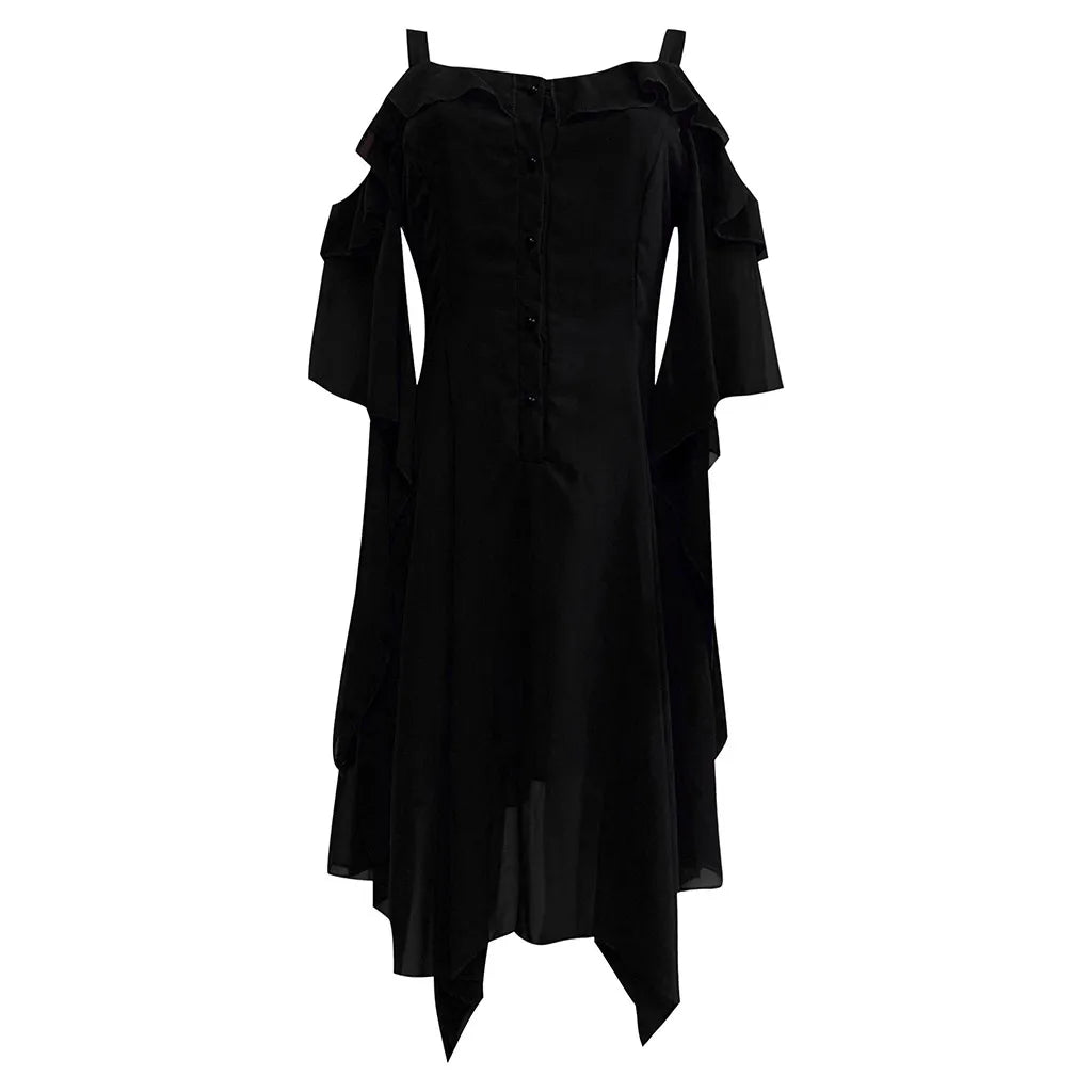 Women's Fashion Dark In Love Ruffle Sleeves Off Shoulder Gothic Midi Dress