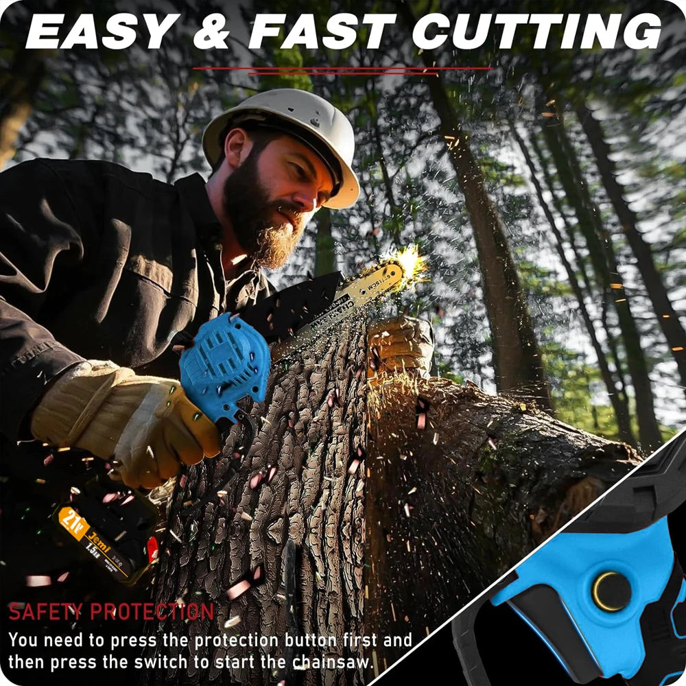 4. Equip with an anti-slip texture handle, making you grip the mini chainsaw tightly;