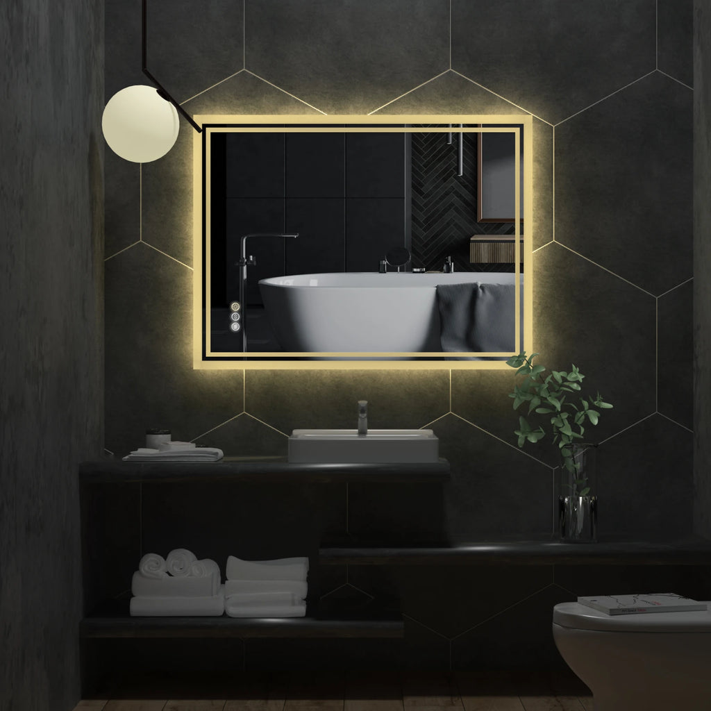 Rectangle Wall Hanging Led Backlit Light Up Bathroom Mirror for Makeup Shaving with Touch Switches 3 Lights Defog
