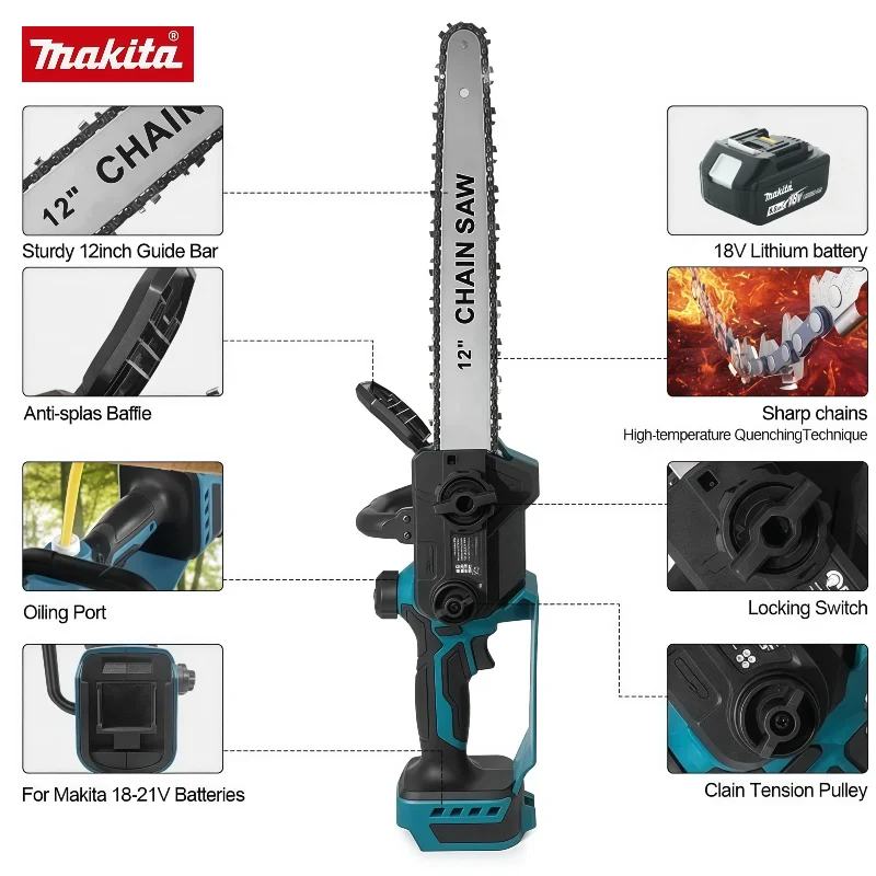 Makita 12 Inch 2200W Portable Chainsaw Brushless Electric Chain Saw Rechargeable Cordless Graden Pruning Tools