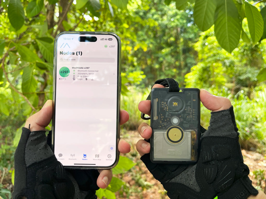 If you've got a IP65 rating Meshtastic device with GPS, temperature, lightness and motion (3-Axis Accelerometer) sensors, numerous potential applications await. Use the Meshtastic APP to communicate with low-power, long-range LoRa® devices via your phone. Connect with nearby nodes, participate in group chats, and share geographic locations—all in areas without cellular coverage.