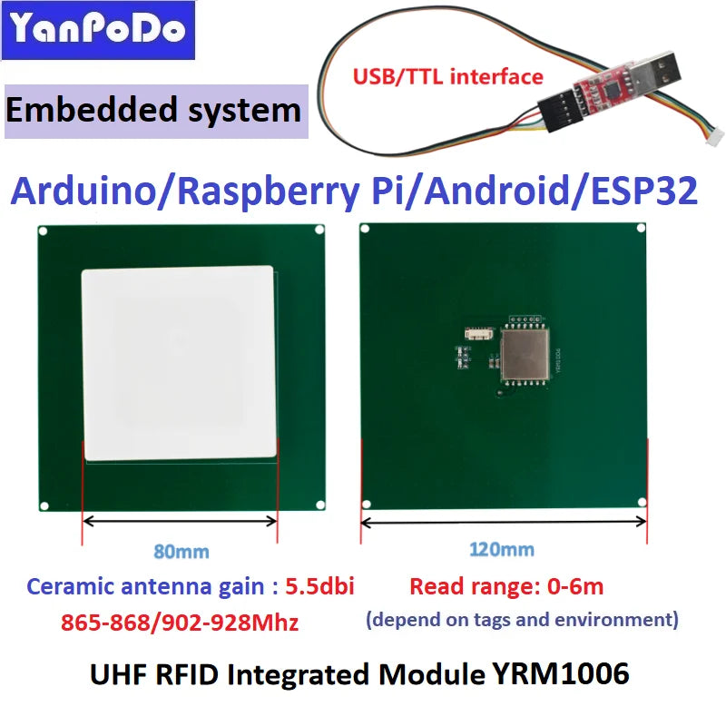 Mini Embedded UHF RFID Module Raspberry Pi Access Control Card Reader 0-5.5dbi Antenna Integrated RFID Module Reader
