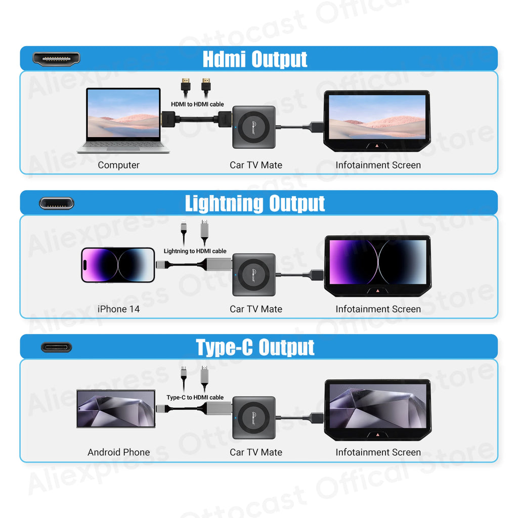 OTTOCAST Car TV Mate C4 Wireless Android Auto CarPlay Adapter Support for HDMI input Video Converter for TV Sticks Game Consoles
