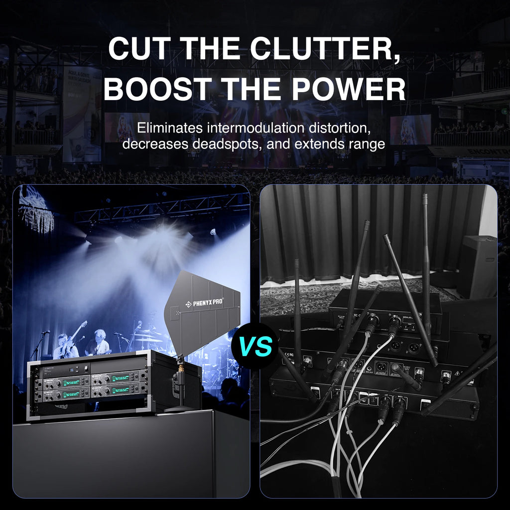 Phenyx Pro PAS-227X UHF Wireless Antenna Combiner Bundle for In-Ear Monitor System, 16 Gain Control, 450-970 MHz Frequency Range