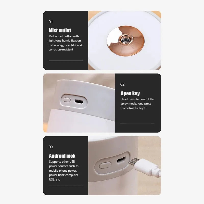 Portable Mini Air Humidifier Ultrasonic Cool Mist Evaporative Humidifier Cordless Quiet Operation for Bedroom Car Office