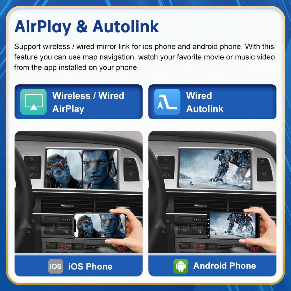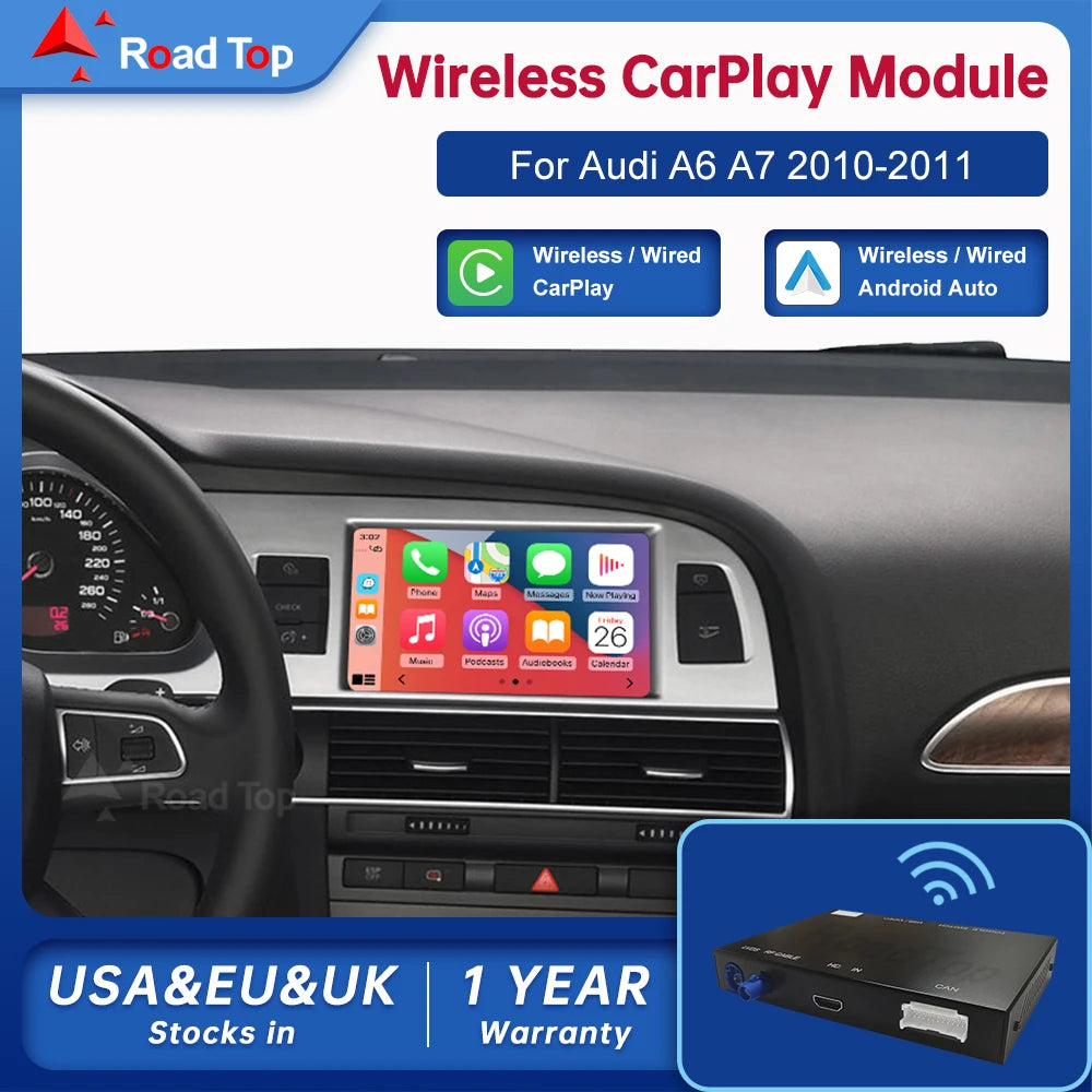 Road Top Wireless Android Auto For Audi Car A6 C6 3G MMI 2010-2011 Carplay Interface Mirror Link Air Play