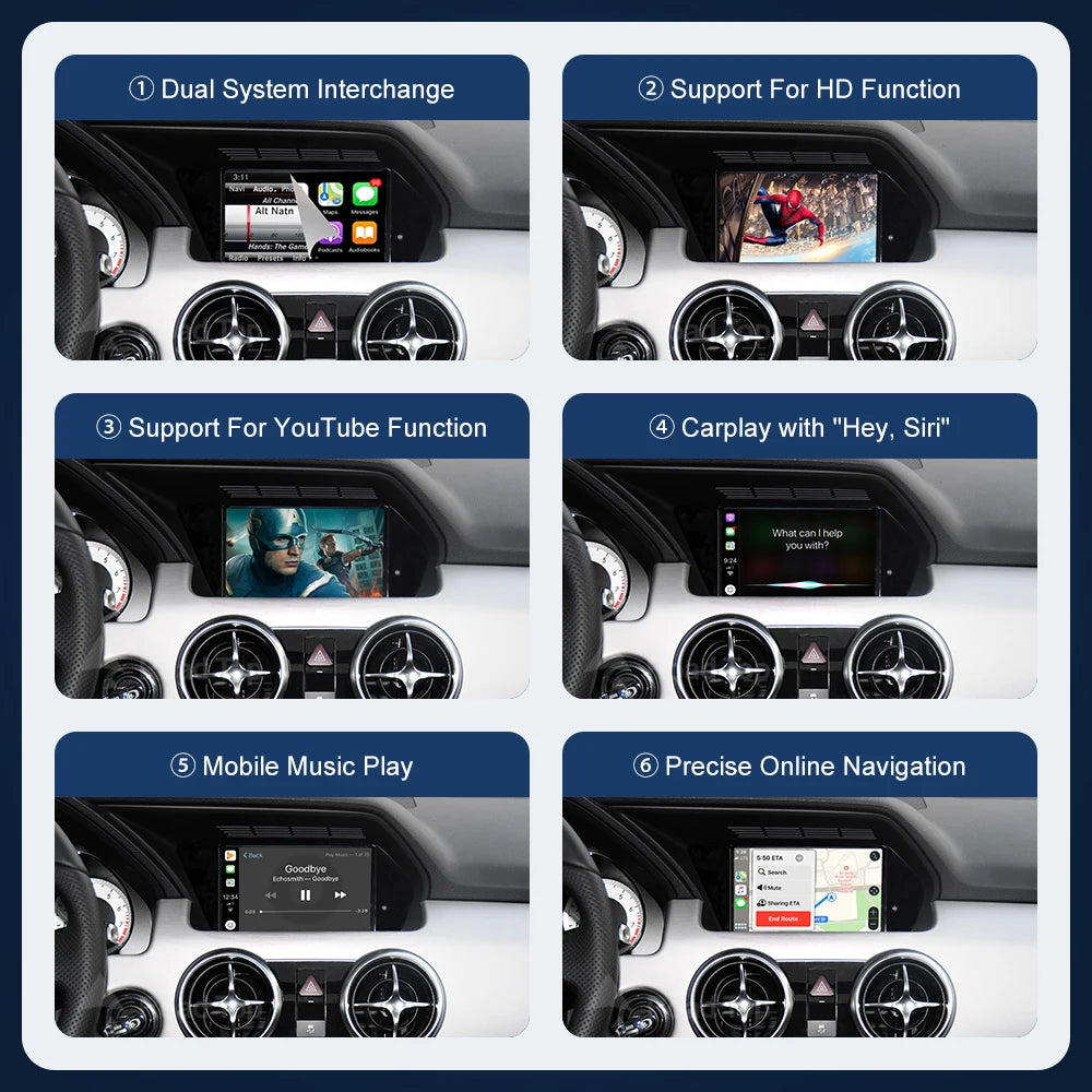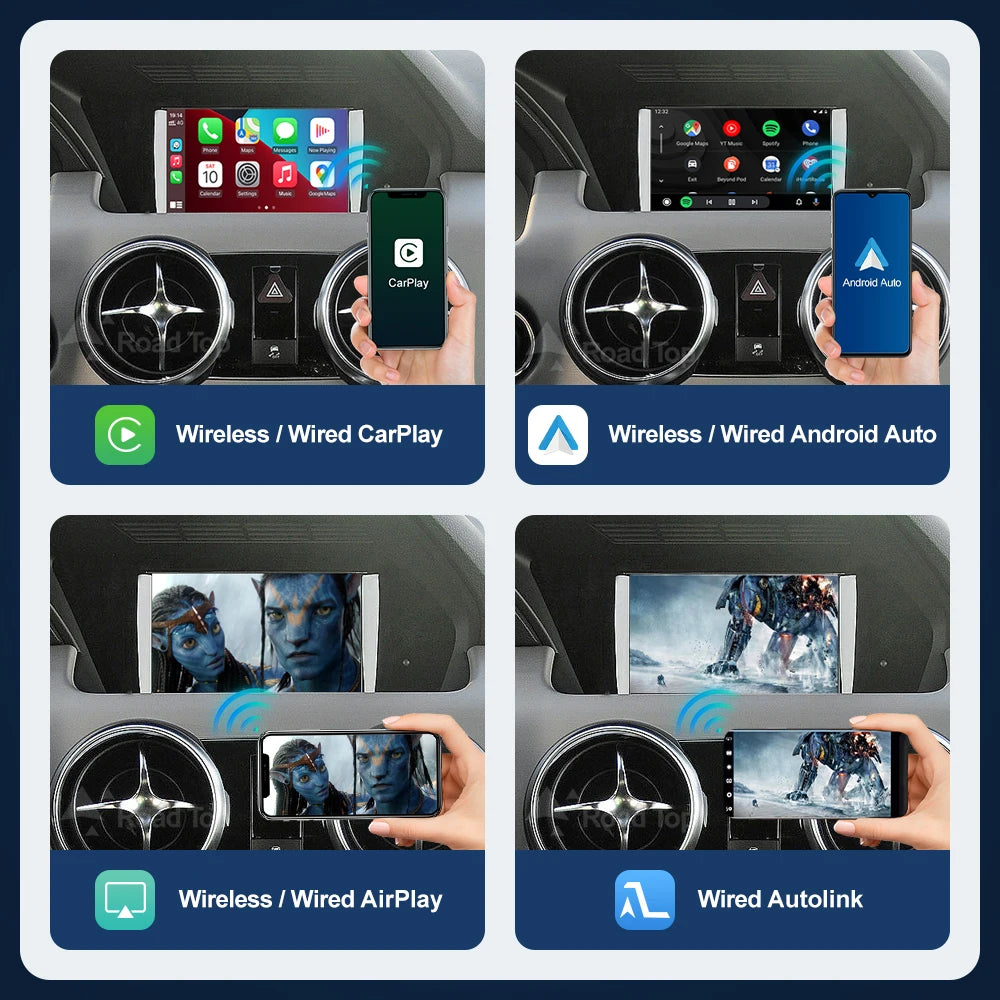 Road Top Wireless CarPlay for Mercedes Benz GLK X204 NTG4.5 2013-2015 with Android Auto Mirror Link AirPlay Car Play Functions
