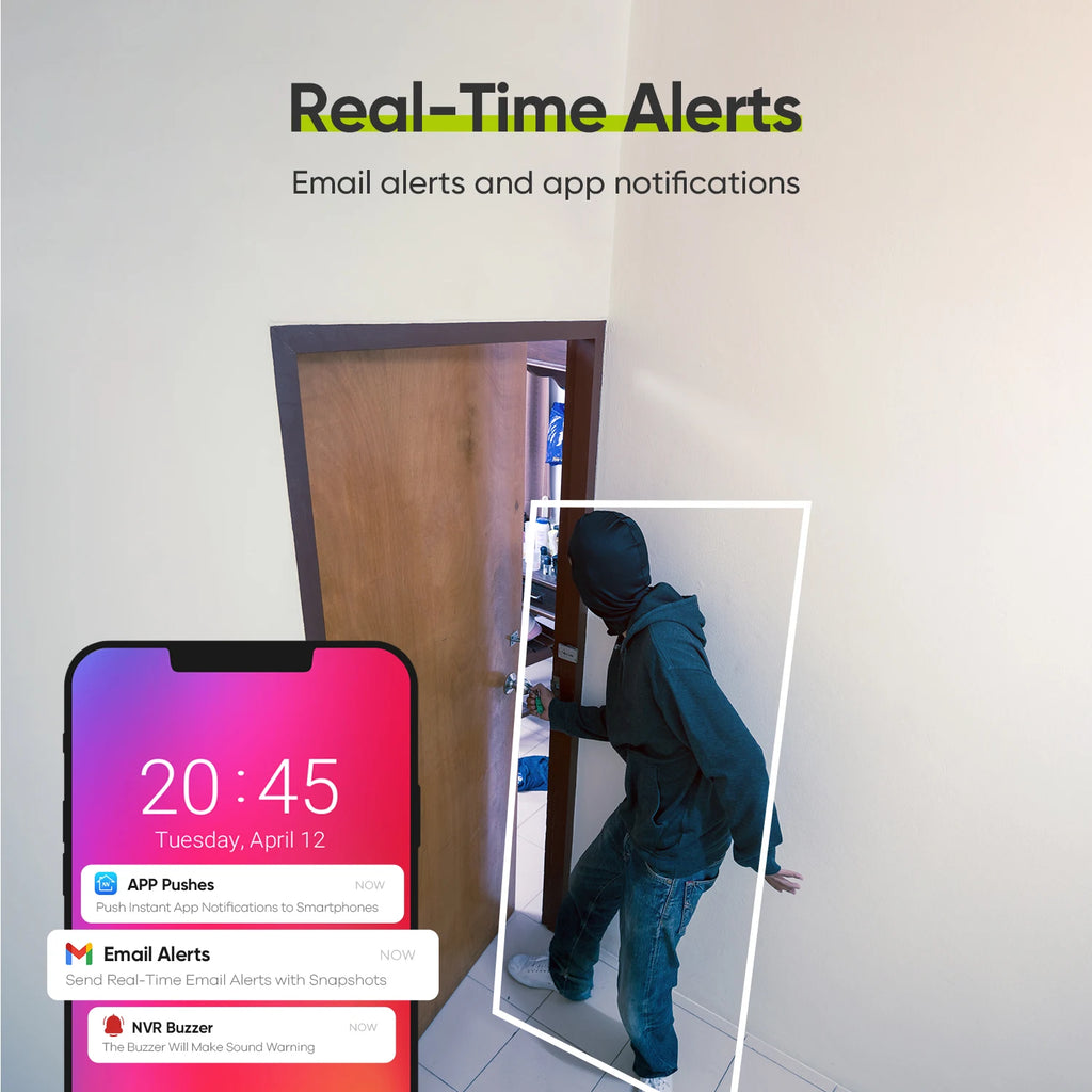 Unlimited Remote Access -Once human detection is enabled, or specific zones are set, for instance, at your front door or backyard, the system catches up with the concerns and sends you real-time alerts via pops-up or emails. Great to focus on the threats and act only when needed. Max up to 12 TB Hard Drive for 24/7 Recording. With the free SANNCE App (Sannce Vision) & Client, you are always free to access the whole system remotely via your smartphones, tablets, computers, or browsers anywhere.