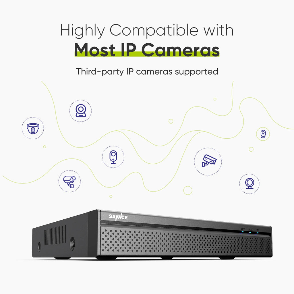 Works with Third Party IP Cam -SANNCE and other brands' IP cameras can work with this SANNCE NVR. No need to leave your original cams in the corner, but it saves you extra expense.