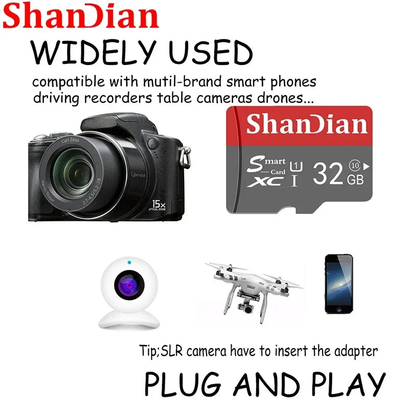 SHANDIAN Smart SD Card 32GB High Speed Class 10 8GB 16GB 32GB Free Card Reader 64GB Mini SD Memory Card TF Card for Smartphone