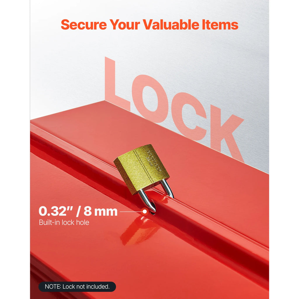 • Reliable Security: With a built-in lock hole that fits a 0.32-inch lock (sold separately), this toolbox keeps your items secure and protected from theft, providing peace of mind while on the move.