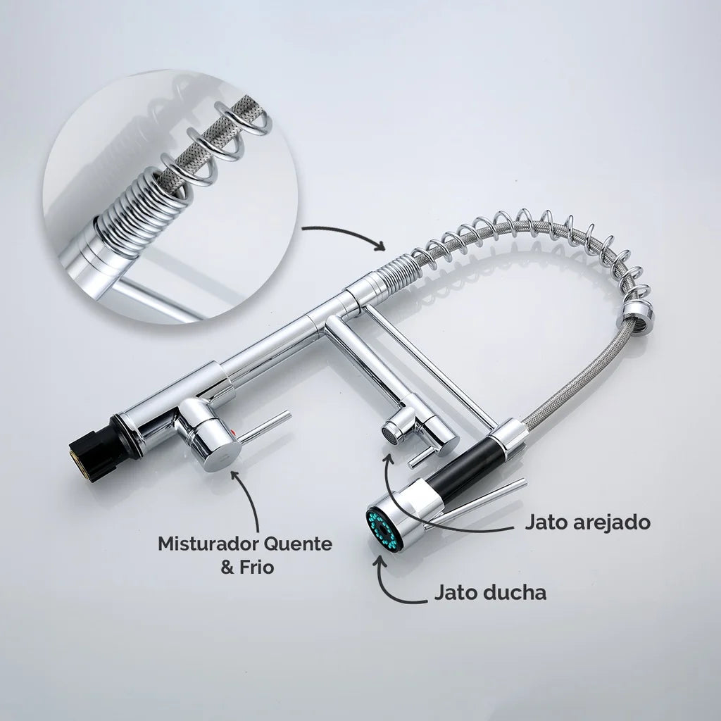 Torneira Cozinha Moderna com Spray Articulado Versátil