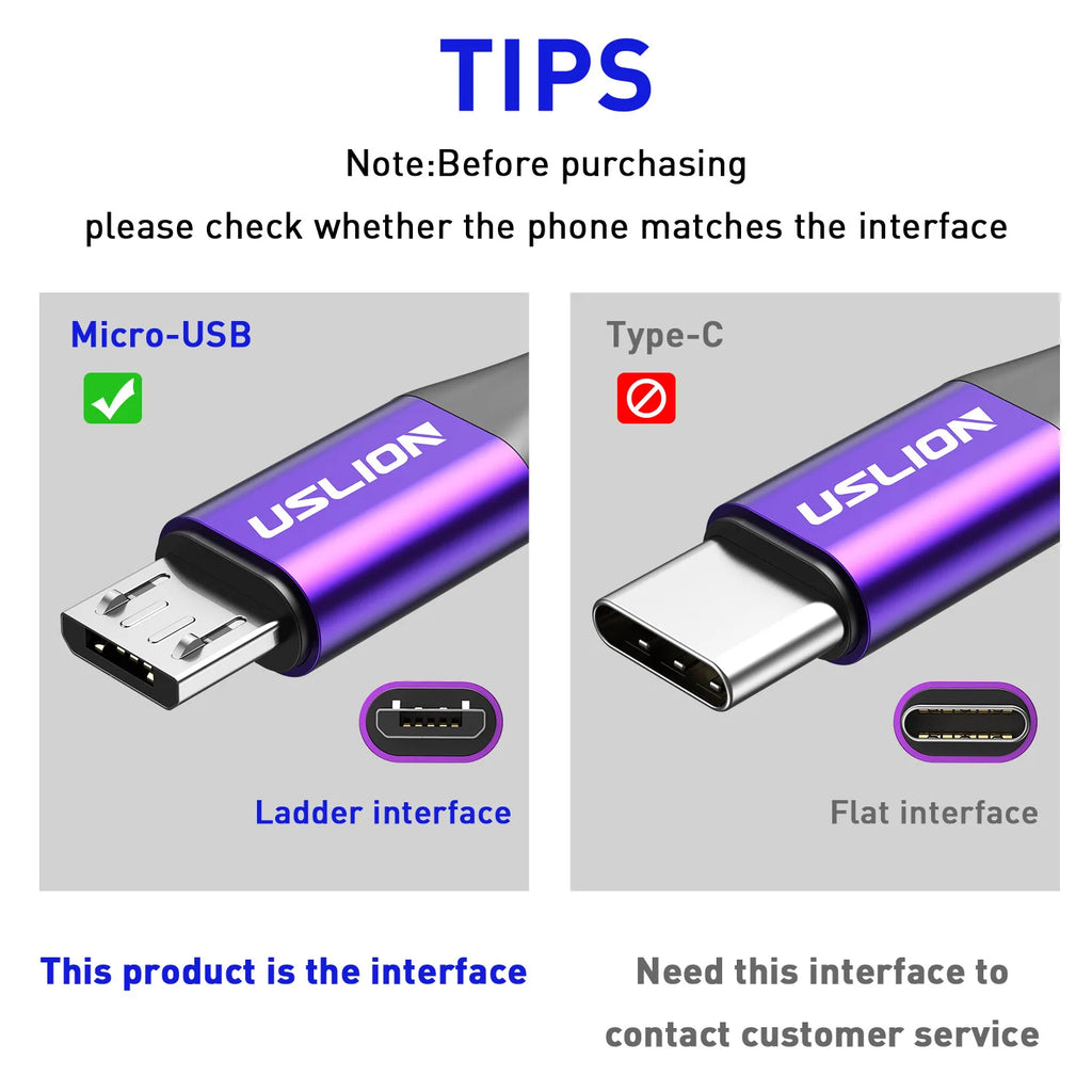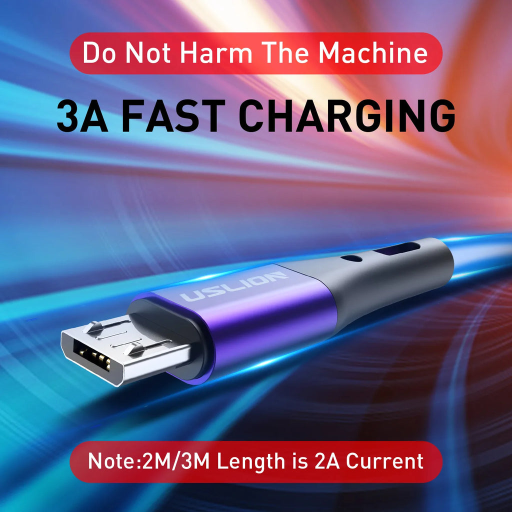 USLION 3A Fast Charging Micro USB Cable Fast Charge USB Data Cable Cord for Xiaomi Redmi Android Cell Phone Micro usb Data Line