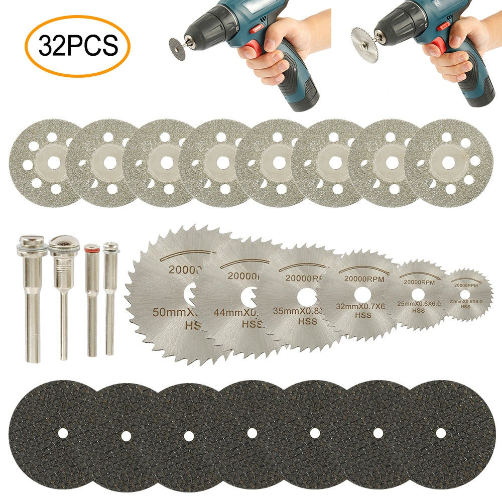 32/63pcs Cutting Tool Saw Blades for Dremel Metal Cutter Power Tools Rotary Tool Wood Cutting Discs Drill Mandrel Cutoff