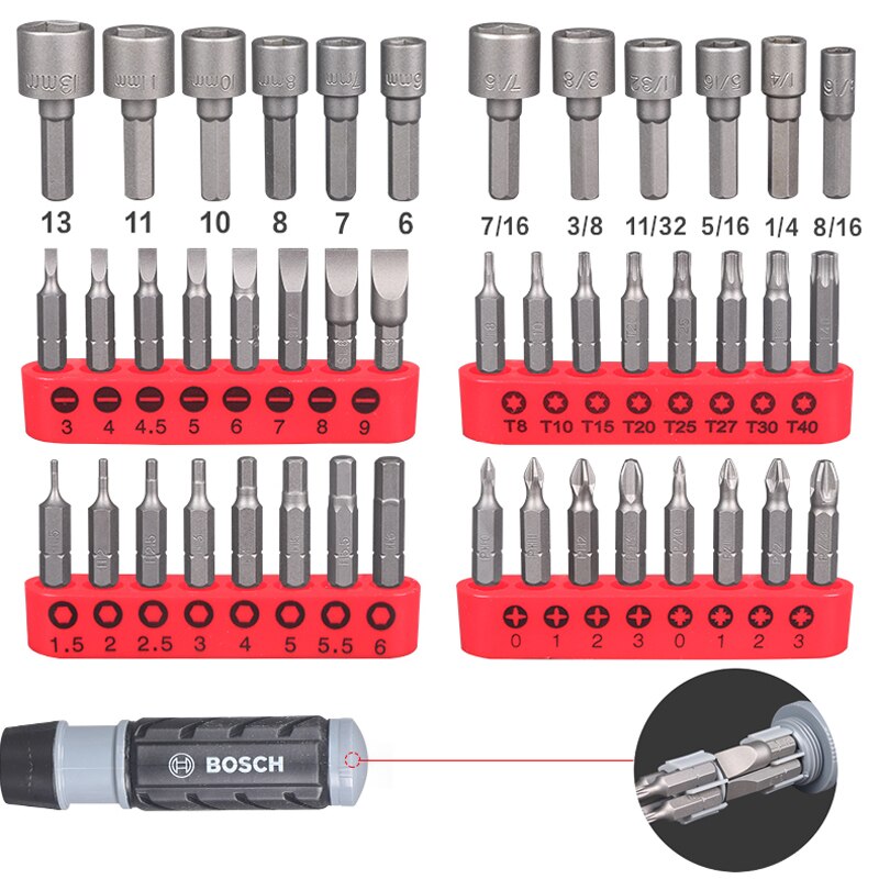 Bosch 46-piece ratchet hexagon socket Phillips screwdriver combination tool set, multi-function chrome vanadium steel forging
